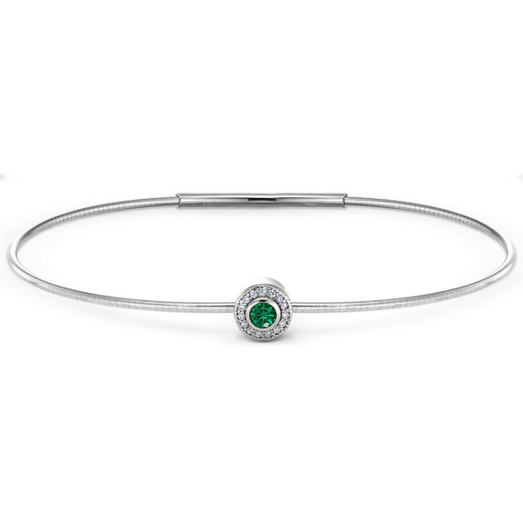 Platinum Finish Sterling Silver Round Simulated Emerald Birth Gem Bracelet with Simulated Diamonds