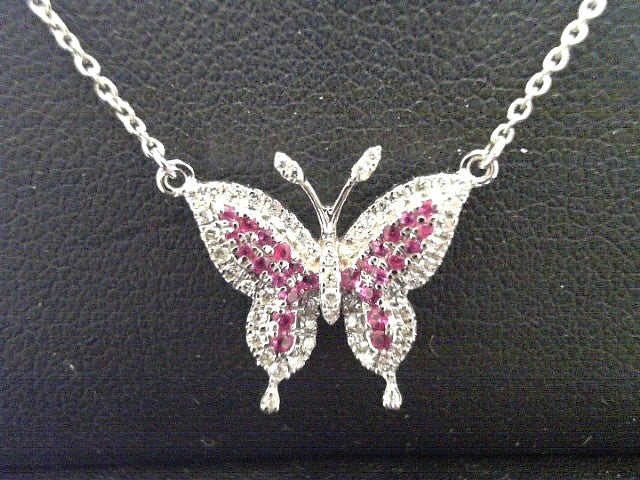 14KWG RUBY & DIAMOND BUTTERFLY NECKLACE - (RU 0.14/ DIA 0.15)
