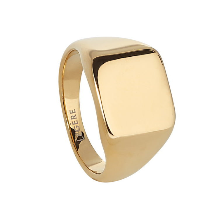 Gold IP Finish Stainless Steel Square Signet Ring - Size 10
