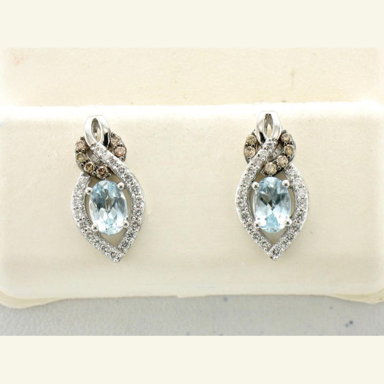 Le Vian Chocolatier Earrings featuring 3/4 cts. Sea Blue Aquamarine, 1/10 cts. Chocolate Diamonds , 1/4 cts. Vanilla Diamonds set in 14K Vanilla Gold