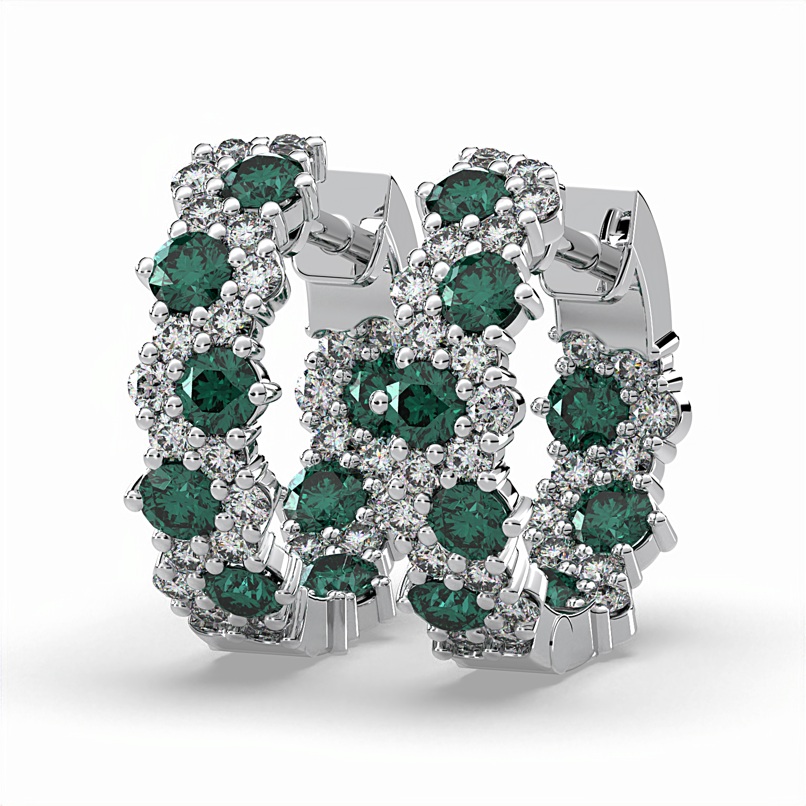 14K WG EM/DIAM I/O HOOPS D=.77CTW E=1.20 CTW