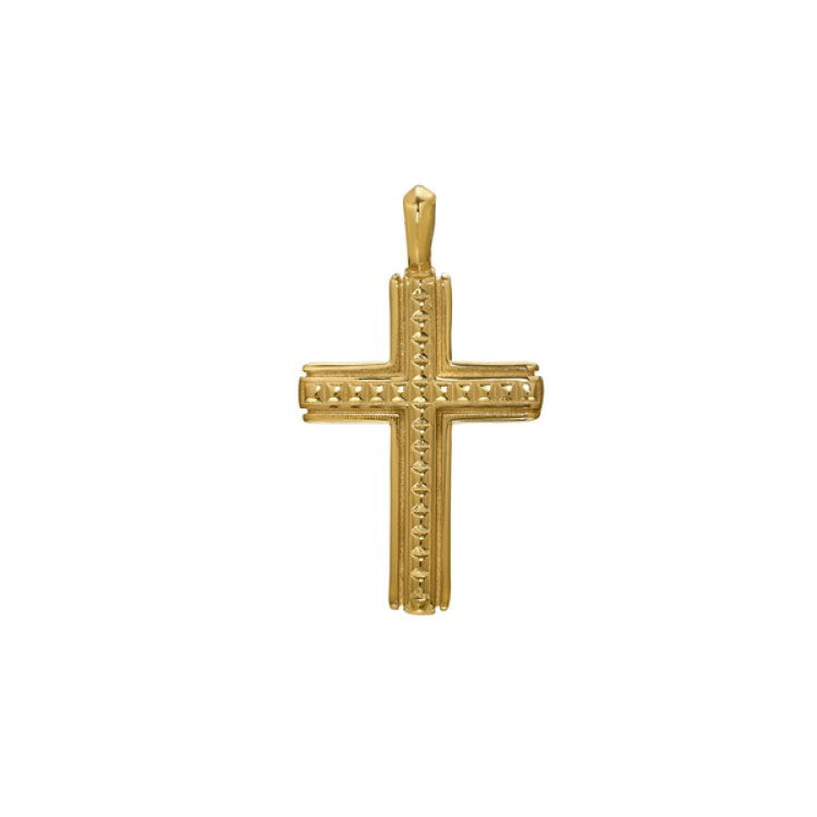 Elevate your style with this sterling silver cross from the BUILT for Him collection. Featuring a sleek polished gold finish and a bold studded channel center, this modern design blends edge and faith. Pair it with the SCH-200 chain for a strong, confident look.