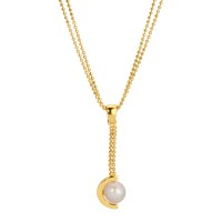 SS & YG PLATED FWP LONG DROP NECKLACE