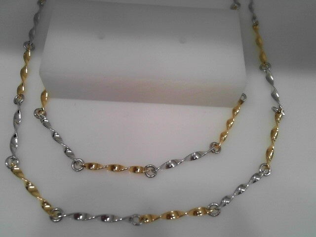 SS & YG PLATED TWISTER LINK DOUBLE STRAND NECKLACE