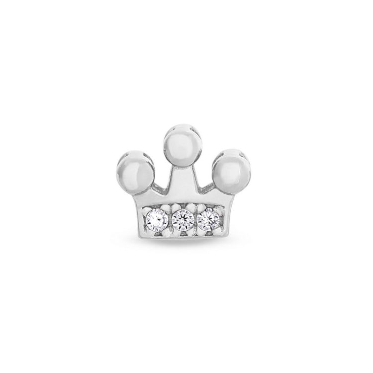 Platinum Finish Sterling Silver Crown Charm with Simulated Diamonds