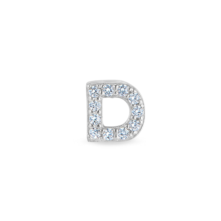 Platinum Finish Sterling Silver Micropave D Initial Charm with Simulated Diamonds