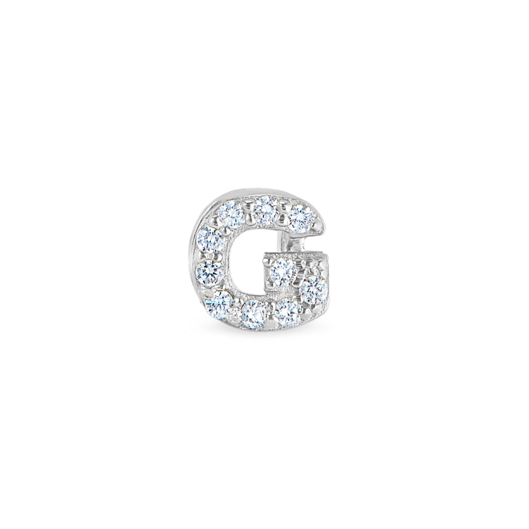 Platinum Finish Sterling Silver Micropave G Initial Charm with Simulated Diamonds