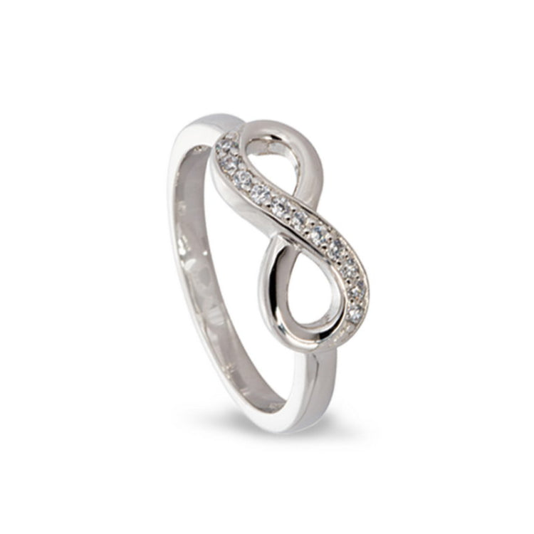 Platinum Finish Sterling Silver Micropave Infinity Ring with Simulated Diamonds