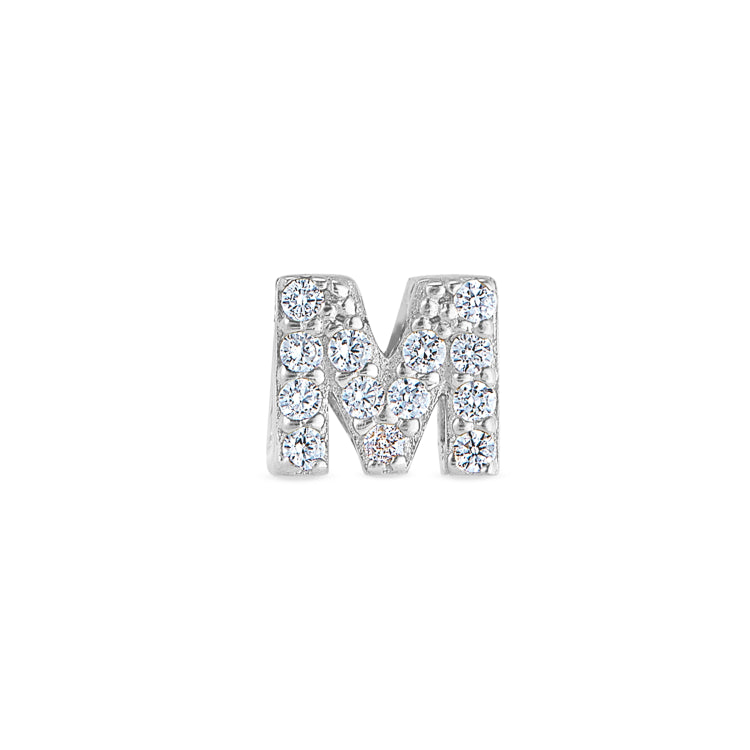 Platinum Finish Sterling Silver Micropave M Initial Charm with Simulated Diamonds