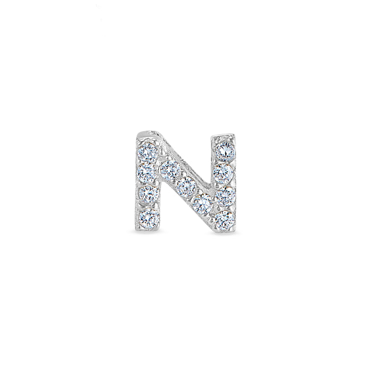 Platinum Finish Sterling Silver Micropave N Initial Charm with Simulated Diamonds