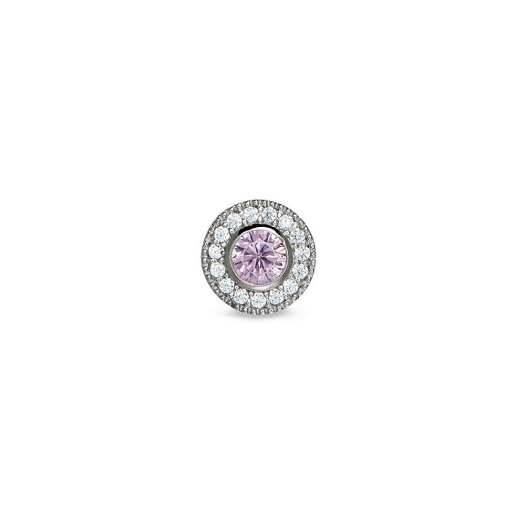 Platinum Finish Sterling Silver Micropave Round Simulated Pink Sapphire/October Birthstone Charm with Simulated Diamonds