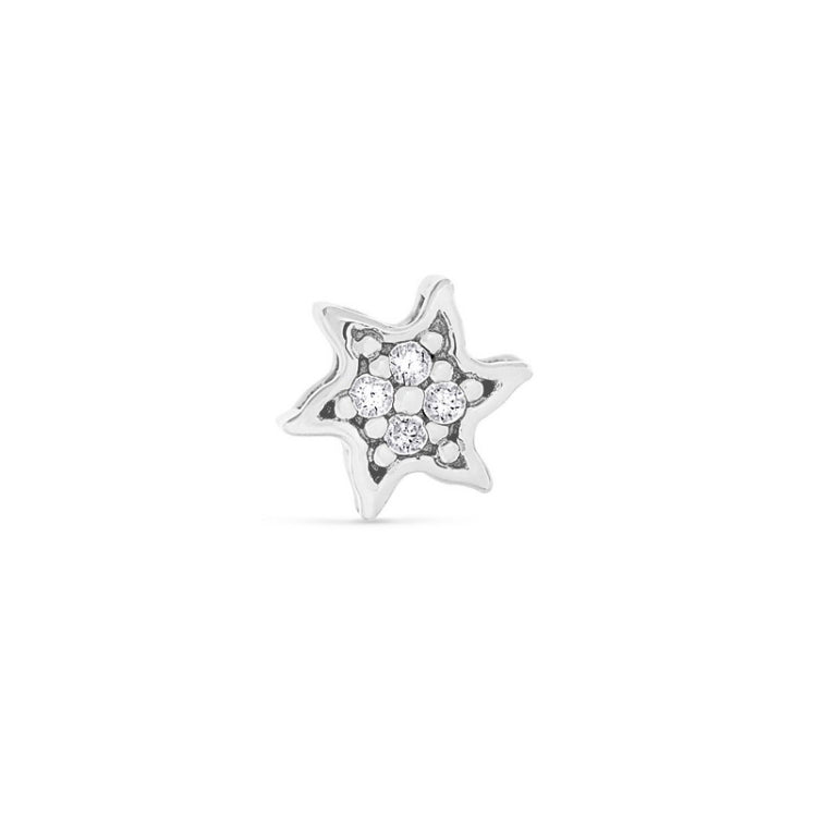 Platinum Finish Sterling Silver Starfish Charm with Simulated Diamonds