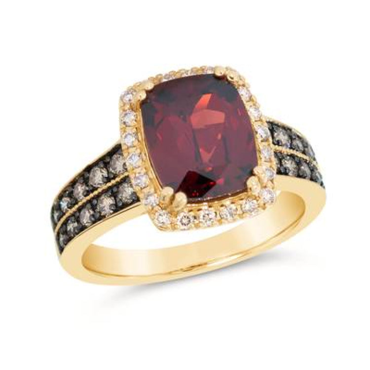 Le Vian® Ring featuring 3 1/6 cts. Pomegranate Garnet™, 1/3 cts. Chocolate Diamonds® , 1/5 cts. Nude Diamonds™ set in 14K Honey Gold™