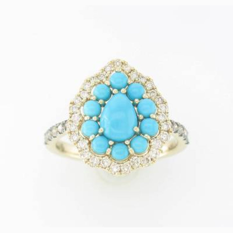 Le Vian® Ring featuring 1 1/2 cts. Robins Egg Blue Turquoise™, 1/3 cts. Chocolate Diamonds® , 1/10 cts. Nude Diamonds™ set in 14K Honey Gold™