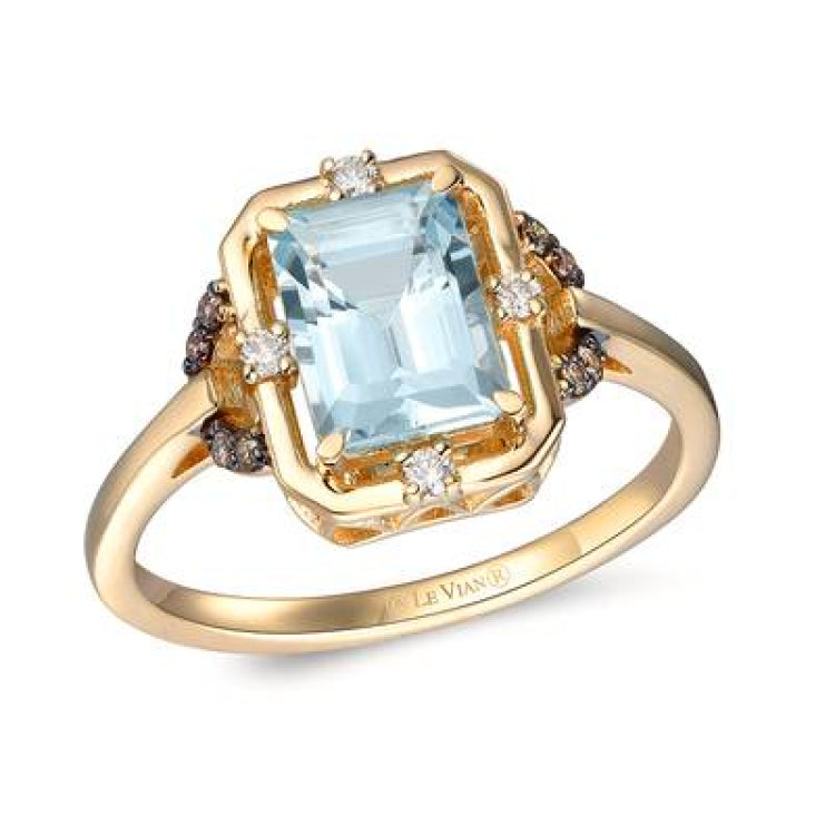 Le Vian® Ring featuring 1 1/4 cts. Sea Blue Aquamarine®, 1/20 cts. Nude Diamonds™ , 1/20 cts. Chocolate Diamonds® set in 14K Honey Gold™