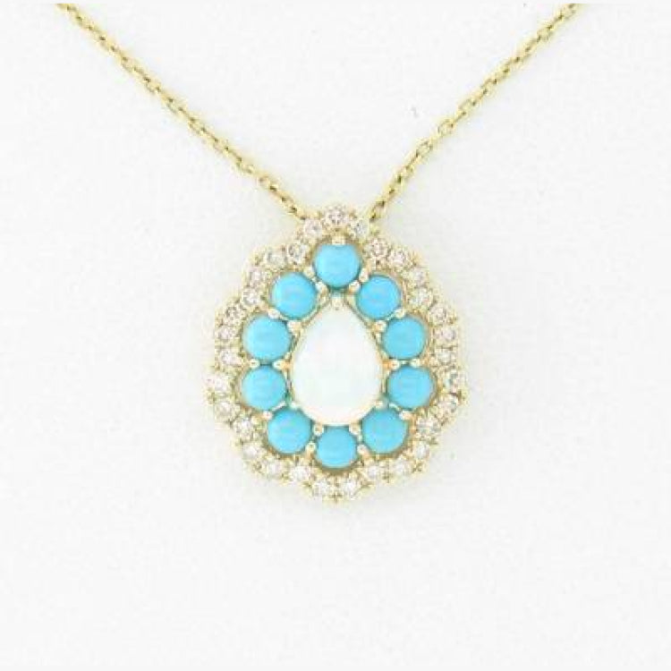 Le Vian® Pendant featuring 1/3 cts. Neopolitan Opal™, 3/4 cts. Robins Egg Blue Turquoise™, 1/4 cts. Nude Diamonds™ set in 14K Honey Gold™
